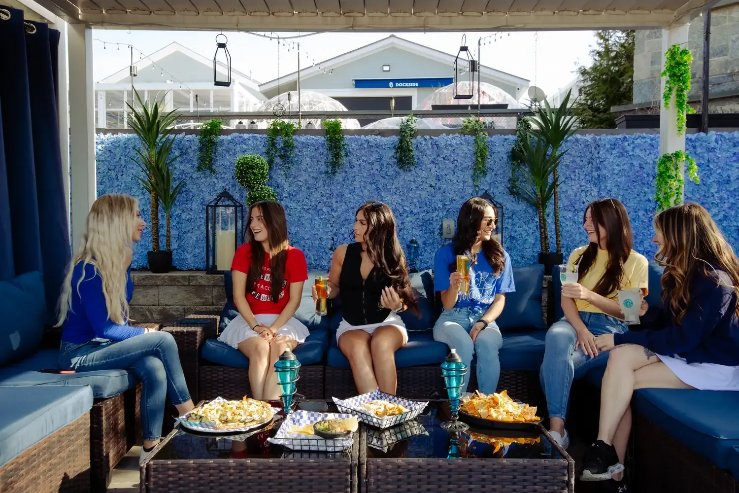 Perfect For: A breezy, beachside hangout with friends. Located on Juicy Beach with prime views of the dock, our private cabanas feature comfortable lounge seating—perfect for a night out, celebration, or simply kicking back. Each cabana seats 6–8 guests.To reserve both cabanas for a private party, email events@docksidebrewery.com.