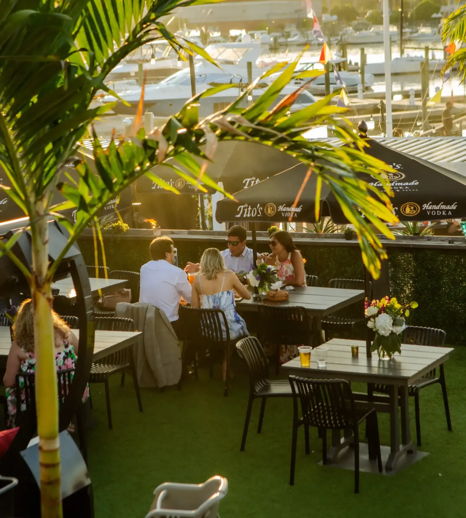 Perfect For: Elevated hangs with a view. Located on the upper deck, our Pergola offers partial shade, scenic waterfront views, and a touch of privacy. With large picnic-style high-top tables, it’s ideal for birthday parties, group dinners, and laid-back gatherings with friends.